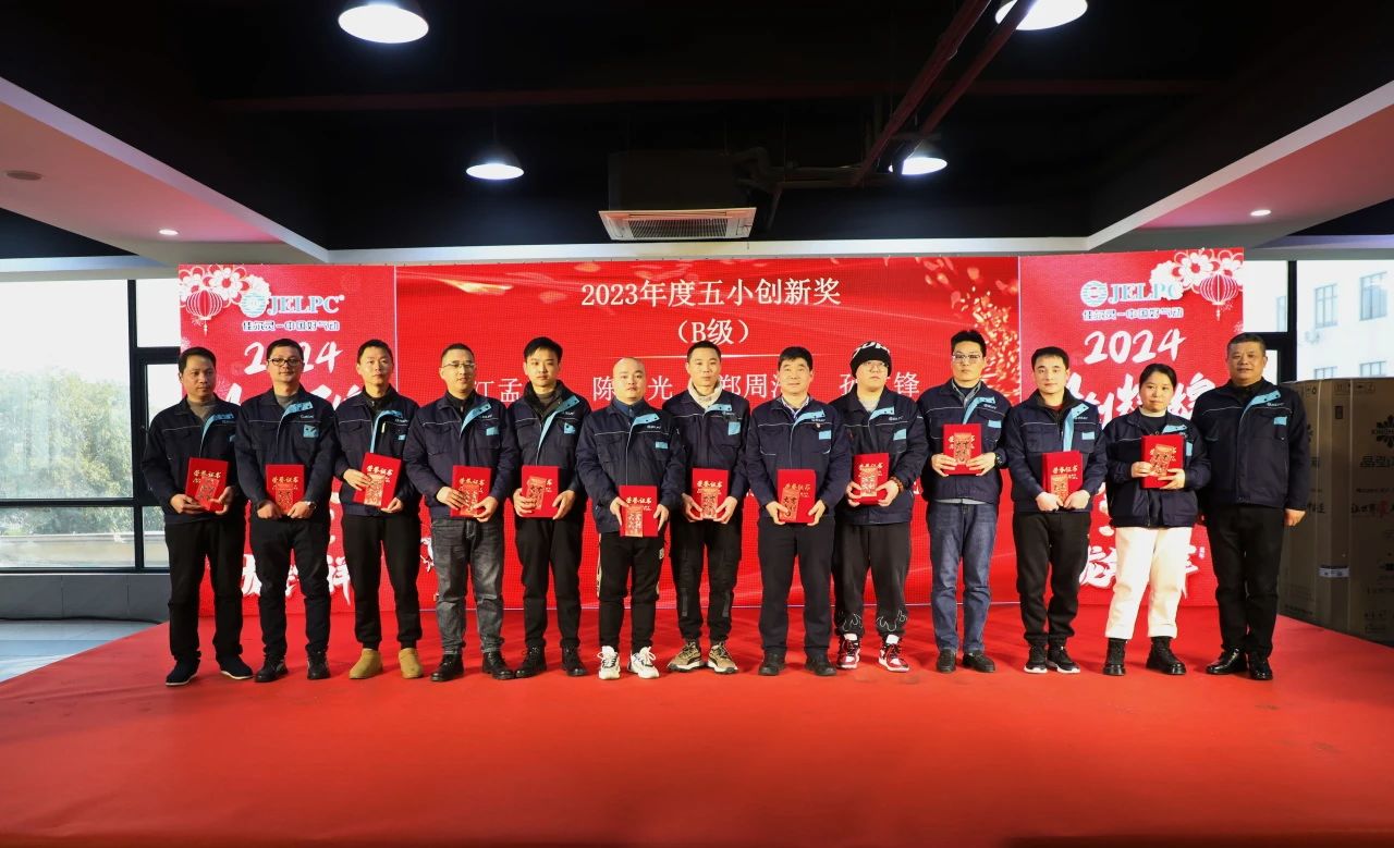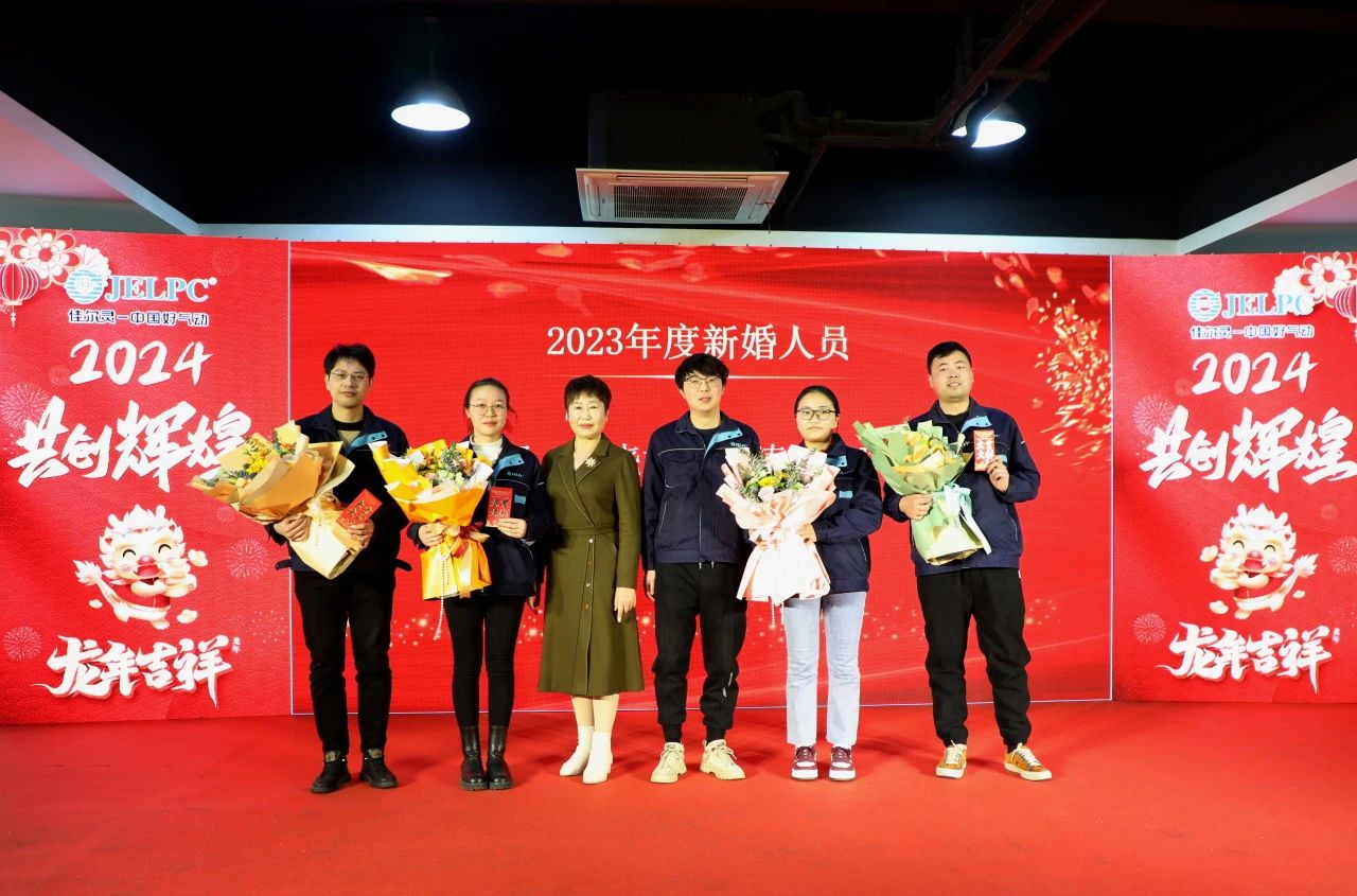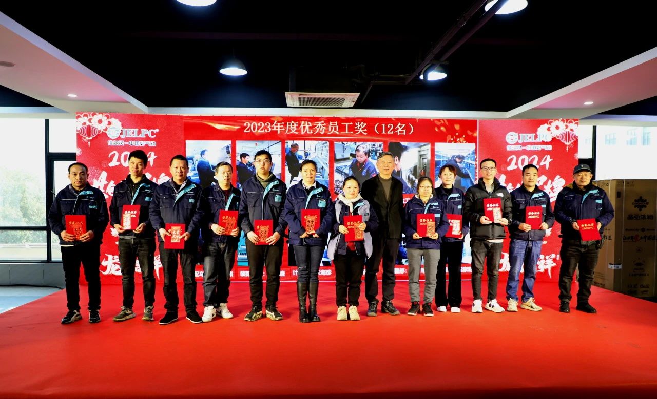 随后,大会分别表彰了7名“年度优秀新人”、12名“年度优秀员工”、28个B、C级 “五小创新”项目、12名继续战斗在工作岗位上的退休员工和在奉化区“青年主题宣讲大赛”荣获企业组一等奖获得者。大会还为5位喜结良缘的新人送上了一份公司贺礼及佳尔灵同胞最真挚的祝福。值得同贺的是单谟君总经理被宁波市甬商发展研究会授予2023年度“思想甬商”称号!