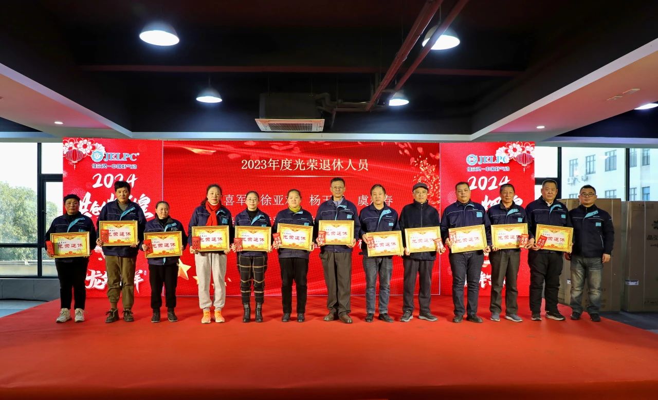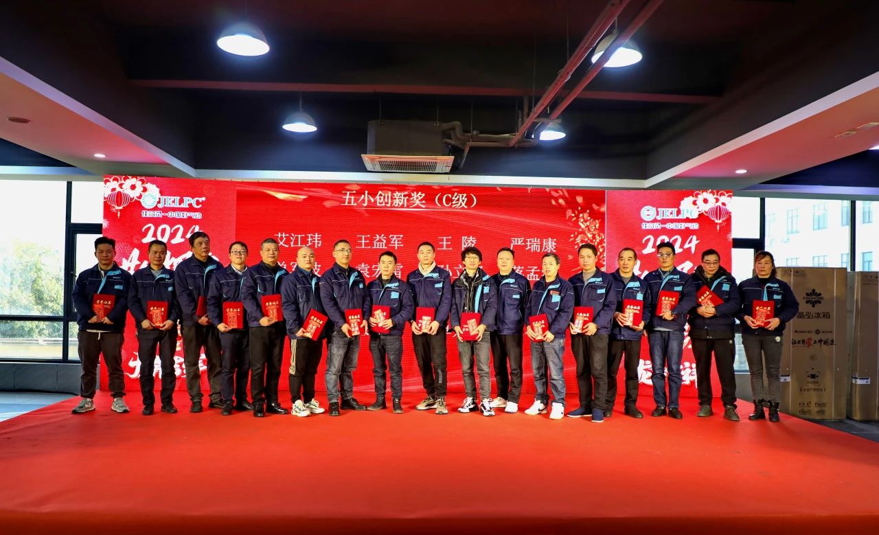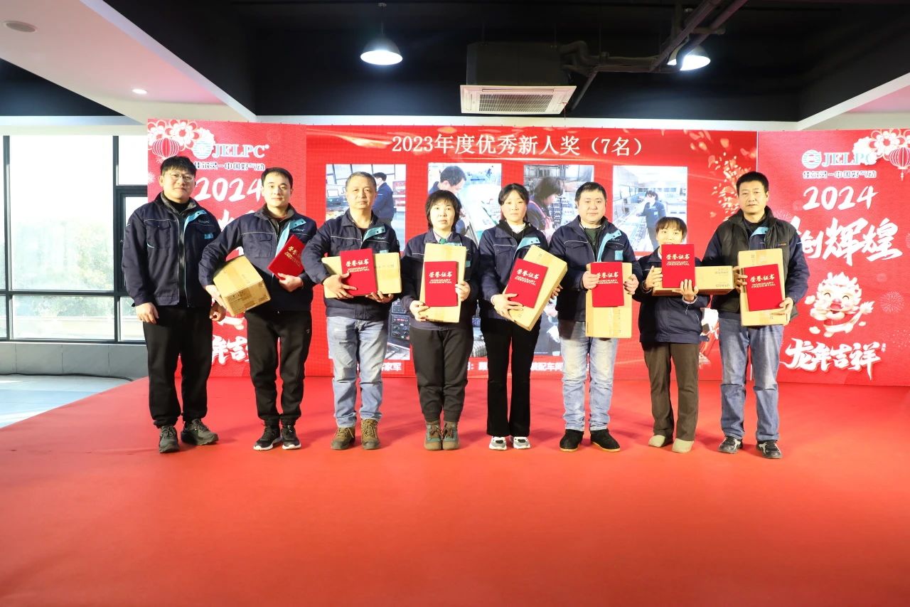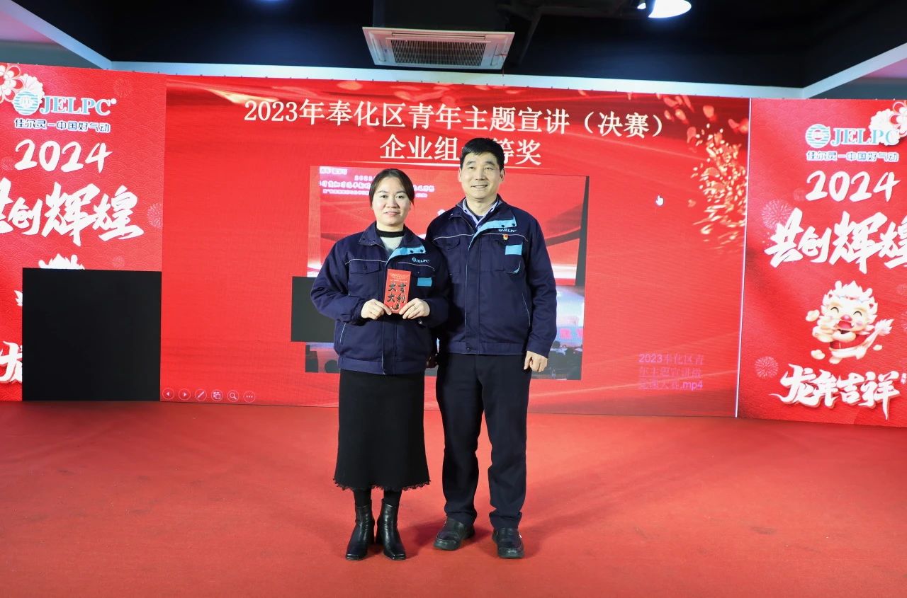 随后,大会分别表彰了7名“年度优秀新人”、12名“年度优秀员工”、28个B、C级 “五小创新”项目、12名继续战斗在工作岗位上的退休员工和在奉化区“青年主题宣讲大赛”荣获企业组一等奖获得者。大会还为5位喜结良缘的新人送上了一份公司贺礼及佳尔灵同胞最真挚的祝福。值得同贺的是单谟君总经理被宁波市甬商发展研究会授予2023年度“思想甬商”称号!