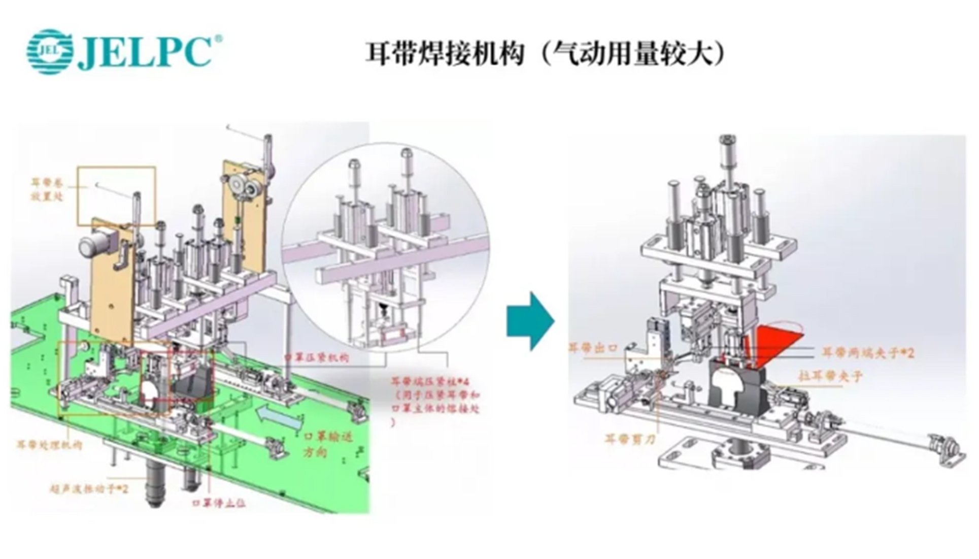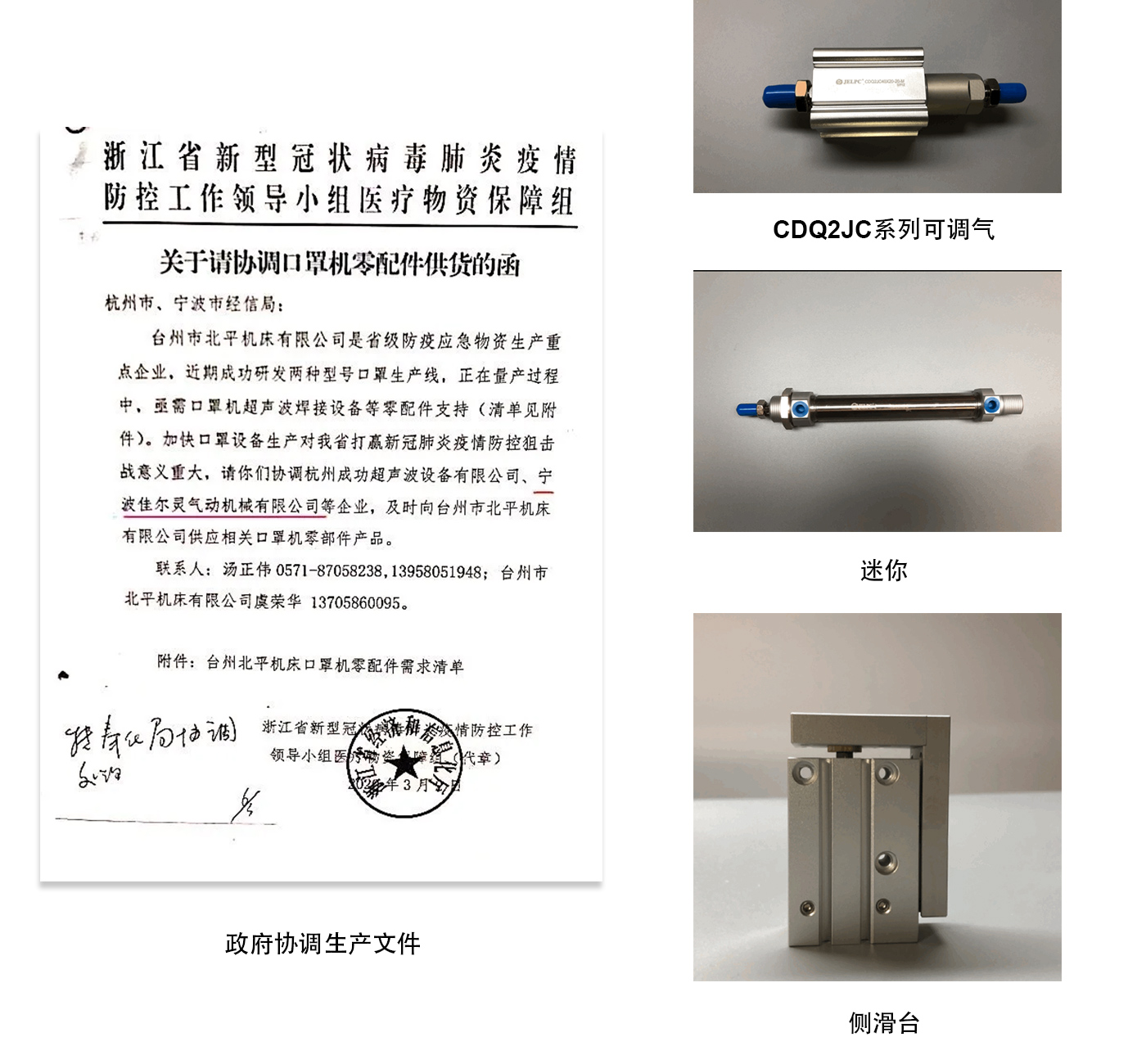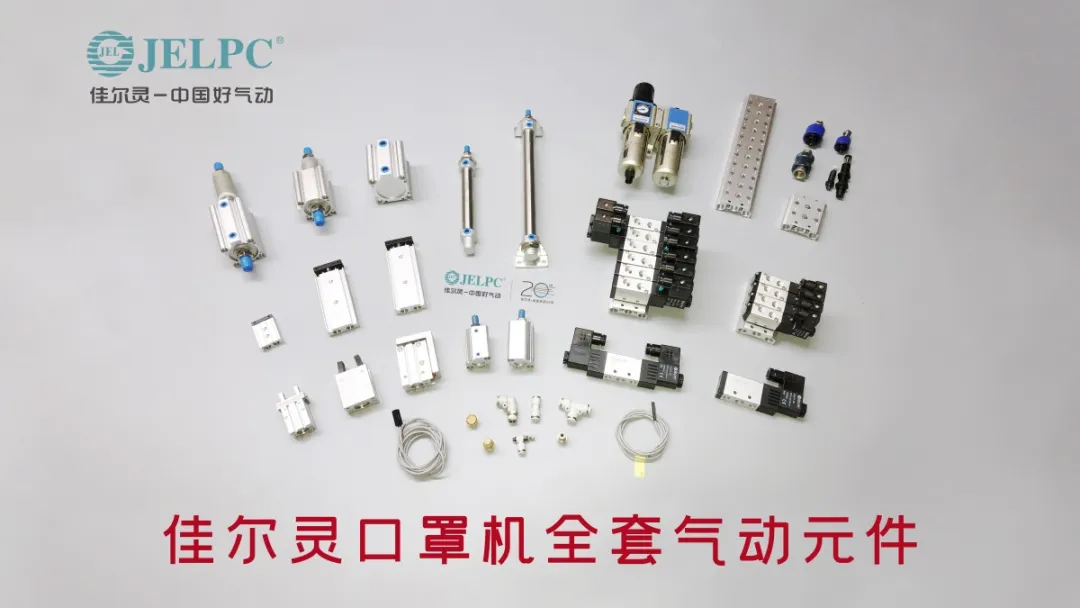 口罩机同其他的自动化机械一样,也需要用到气源处理(三联件)、控制元件(电磁阀)、执行元件(气缸)、附件(气管、接头等),这就需要用到大量的气动元件。我们佳尔灵拥有全部的产品支持。